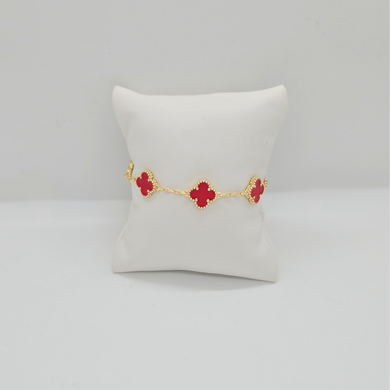 A delicate and elegant Red Clover Bracelet crafted with 14k gold plating. Featuring a timeless clover charm symbolizing luck and beauty, this bracelet adds a touch of sophistication to any outfit—perfect for everyday wear or special occasions.